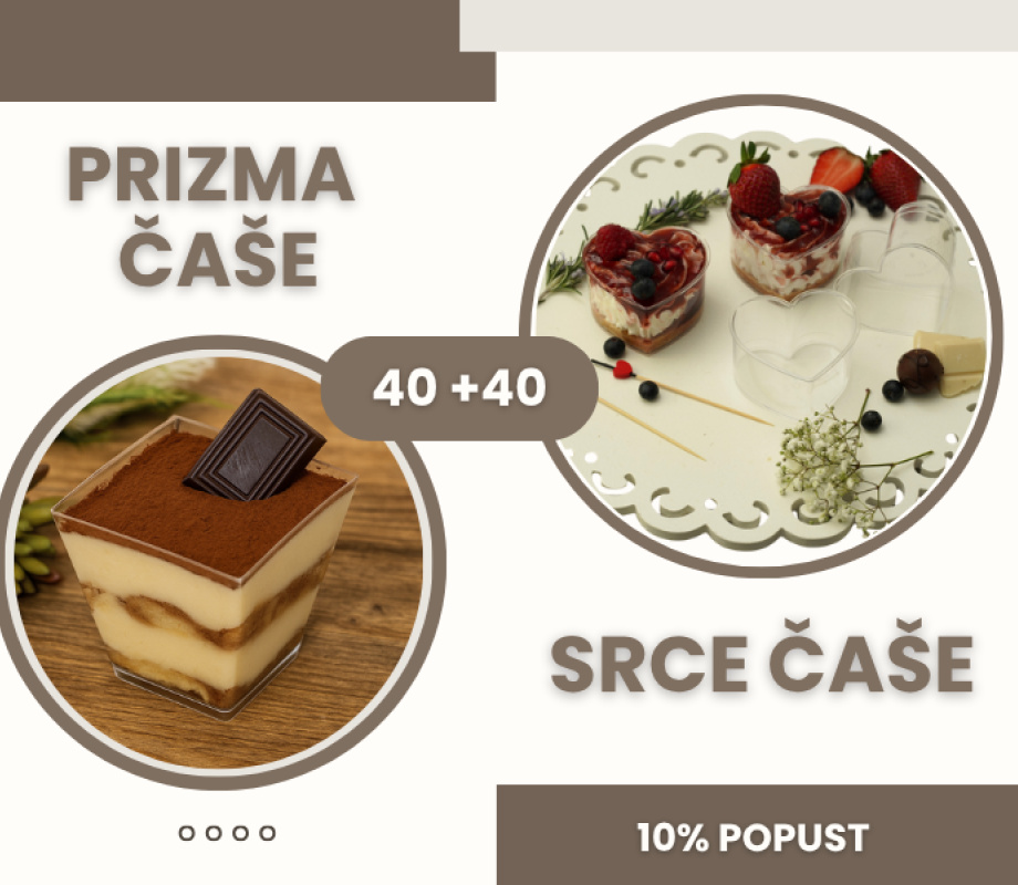 U setu se nalazi 40 čaša u obliku prizme od 200ml i 40 srce čaša od 150ml.