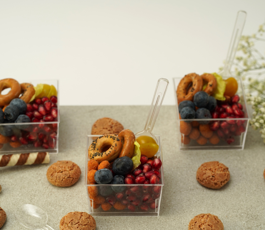 U setu se nalazi 40 zaobljenih čaša i 40 plitkih kockastih čaša