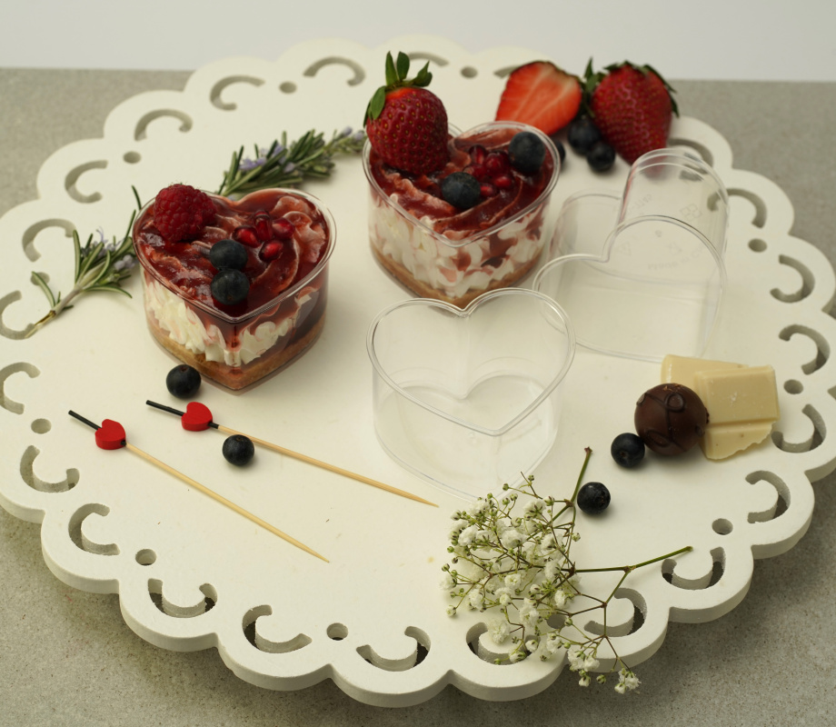 U setu se nalazi tacna sa stopom (boja po izboru) i 10 srce čaša TYSL 7745.